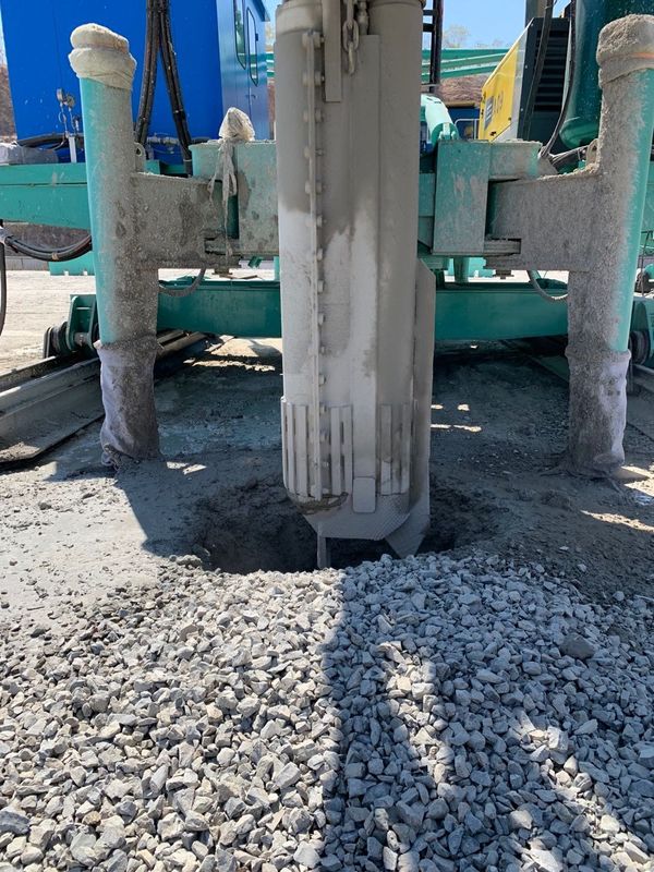 Nell'ambito dell'azione di spinta di pressione d'aria, riempia l'inizio della ghiaia dal recipiente di pietra fornito alla cima di vibroflot, passano passaggio tramite la mezzo metropolitana d'alimentazione messa dentro di vibroflot, infine per compilare al fondo del pozzo trivellato dallo sbocco situato al fondo di vibroflot